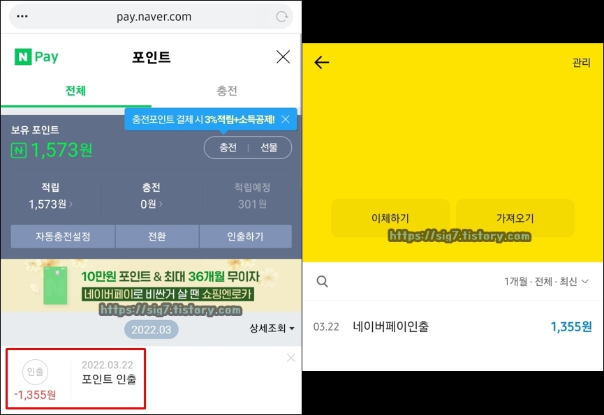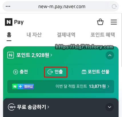 포인트 아래에 보이는 '인출'을 눌러줍니다.