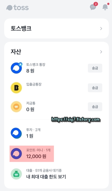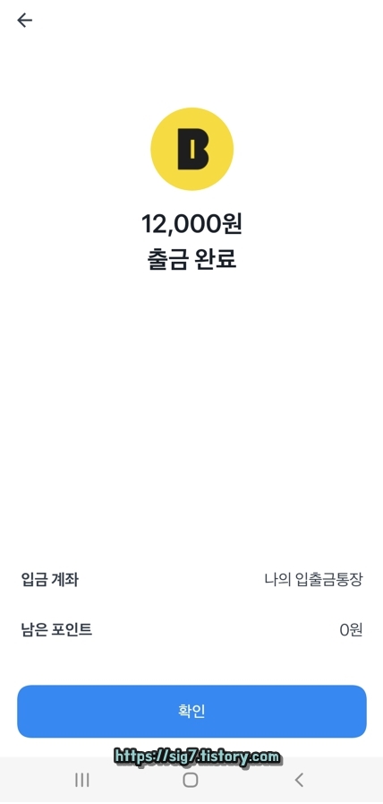 그러면 이렇게 토스 포인트 출금이 완료됩니다. 그럼 이제 입금이 제대로 되었는지 확인을 한 번 해볼까요?