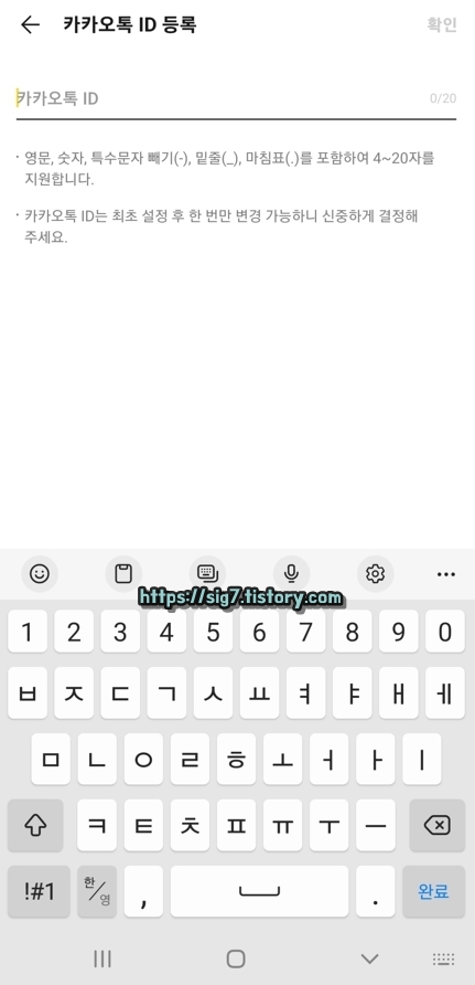 사용하고 싶은 카카오톡 ID를 입력해줍니다. 참고로 다른 사람들과 똑같은 아이디는 사용할 수 없습니다.