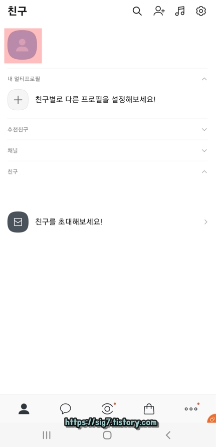 카카오톡 실행 후, 본인 프로필을 눌러줍니다.