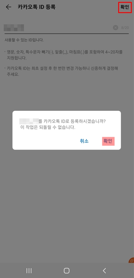 ※ 카카오톡 ID는 최초 설정 후, 한 번만 변경 가능합니다.