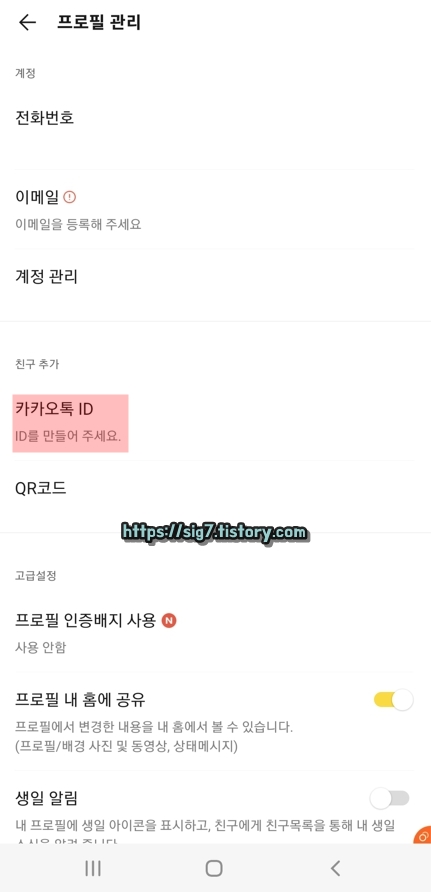 친구 추가 쪽에 보이는 '카카오톡 ID'를 눌러줍니다.