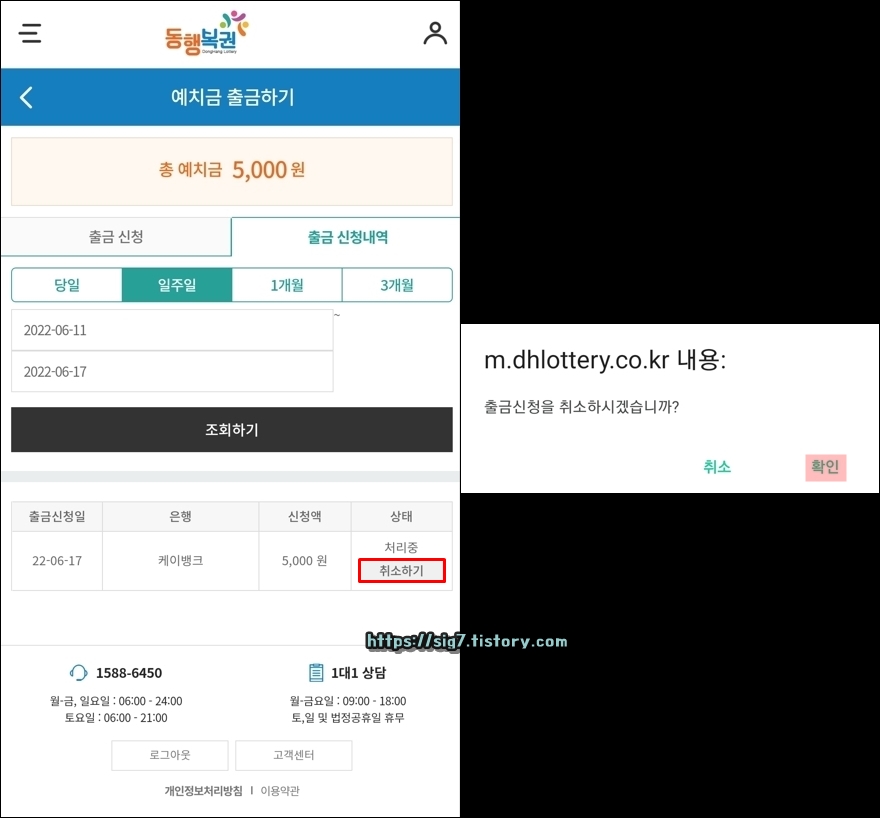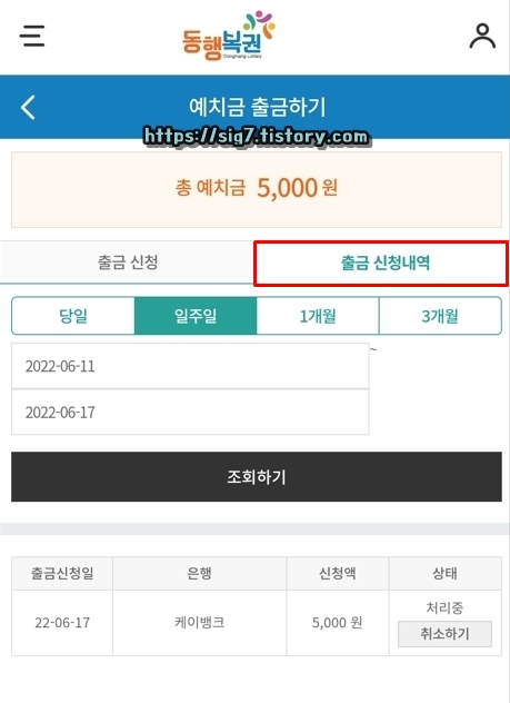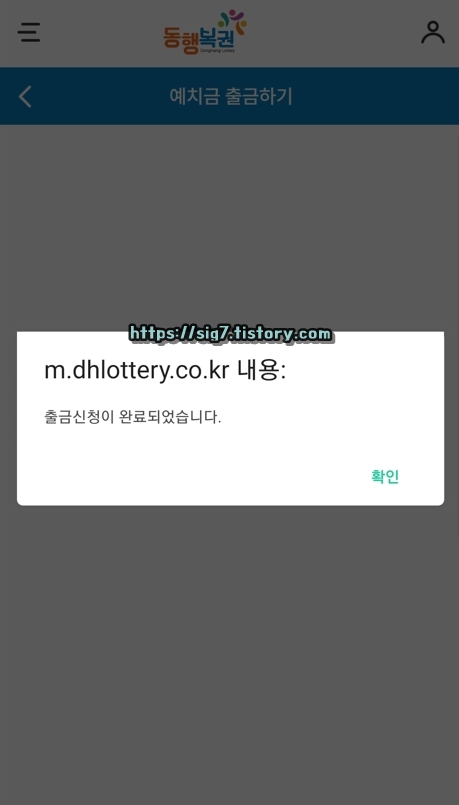 그러면 이렇게 동행복권 예치금 출금 신청이 완료됩니다.
