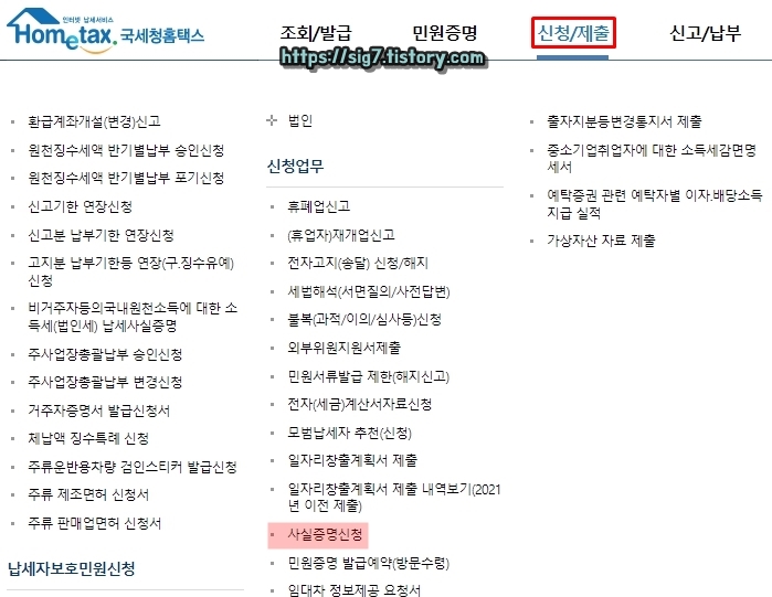 사업자등록사실여부 증명서 홈택스 발급방법