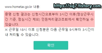 세무서 영업 종료 시간인 18시 이후 신청분은 다음 근무일 09시부터 3시간 이내 처리될 수 있습니다.