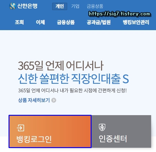 먼저 신한은행 인터넷뱅킹 홈페이지에 접속해줍니다.