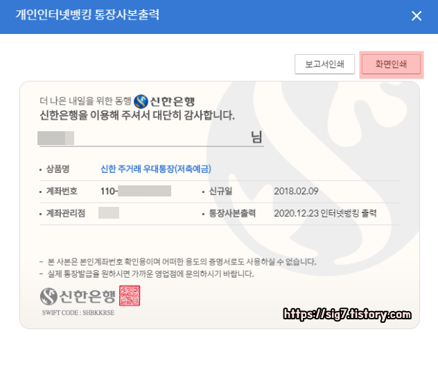 신한은행 통장사본 출력방법