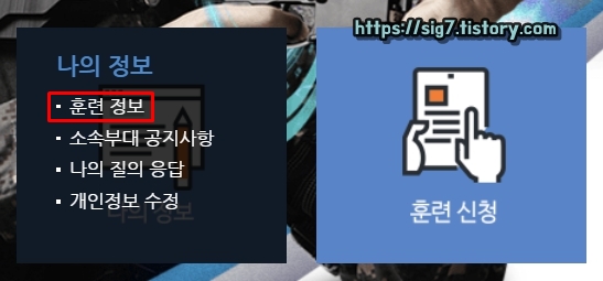로그인 후, 나의 정보 메뉴에 있는 '훈련 정보'를 눌러줍니다.