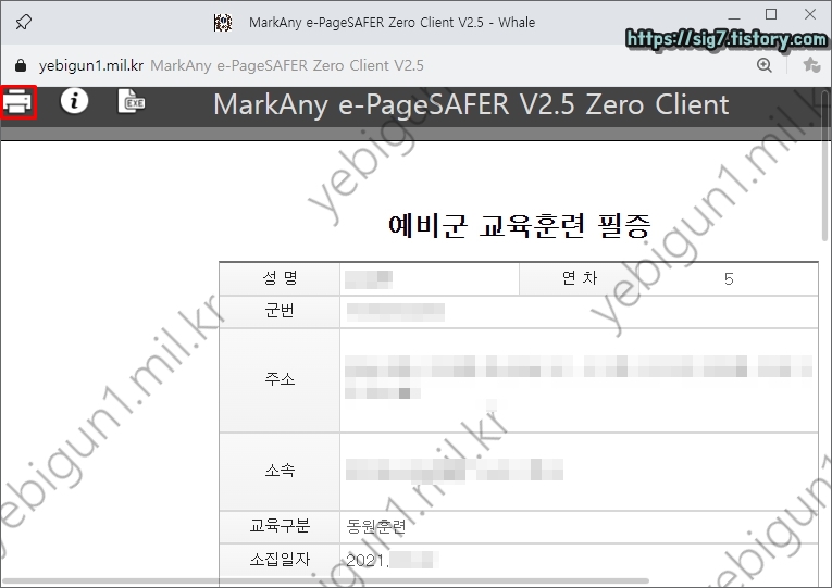 예비군 교육필증 인쇄방법