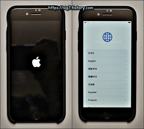 그리고 조금만 기다려주면 이렇게 공장 초기화가 완료되는데요. 초기화 완료 후 아이폰에서 사용할 언어부터 해서 초기 설정들을 하나씩 진행해주면 됩니다.