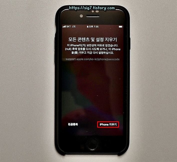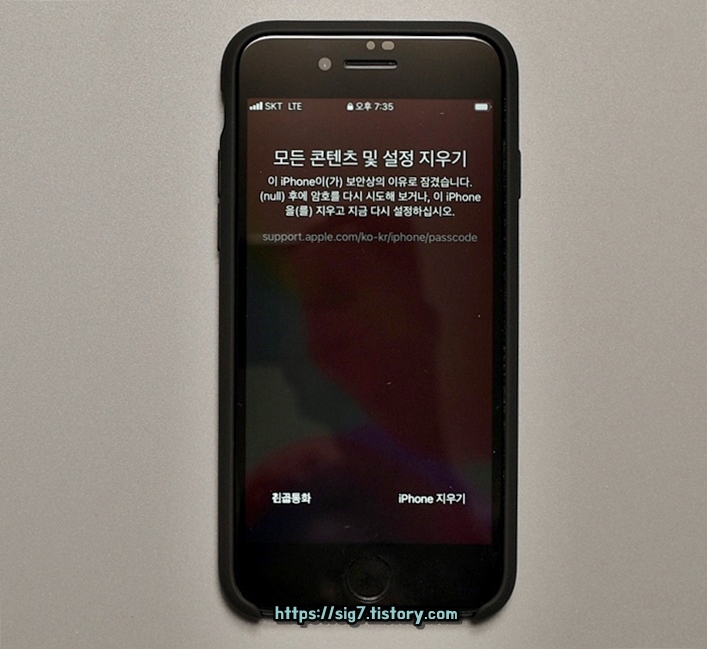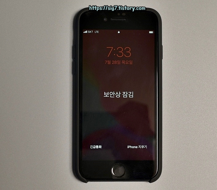 ※ 보안상 잠김 해결 방법은 아이폰 초기화밖에 없습니다.