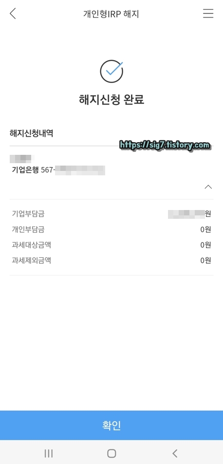 그러면 이렇게 기업은행 퇴직연금 (개인형 IRP) 해지 신청이 완료됩니다.