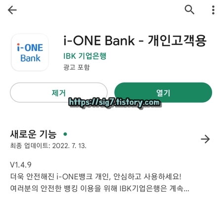먼저 기업은행 모바일 뱅킹 앱을 실행해 줍니다.