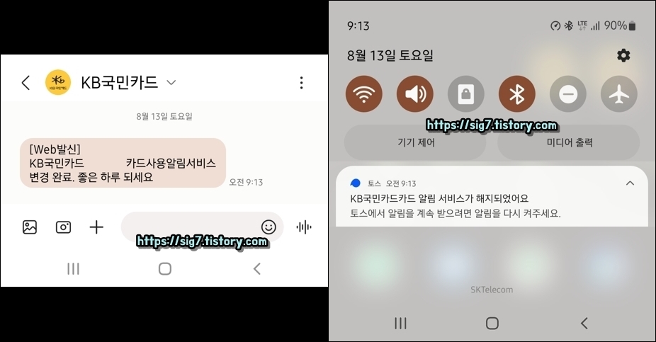 참고로 문자 알림 서비스 신청을 완료하면 이전에 쓰던 모바일 앱 PUSH 무료 알림은 자동으로 해지됩니다. (토스 앱 푸시, KB국민카드 앱 푸시 알림 등)