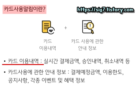서비스 안내에 보이는 '카드사용알림'을 눌러줍니다.