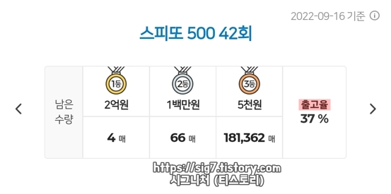 스피또500 42회 당첨현황 및 출고율