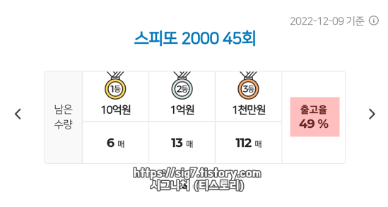 스피또2000 45회 당첨현황 및 출고율