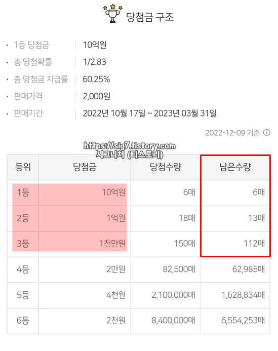 1등 10억원 ▶ 6매. (총 6매)