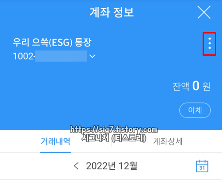 이어서 우측 상단에 보이는 "계좌관리(점이 3개 찍힌 것)"를 눌러줍니다.