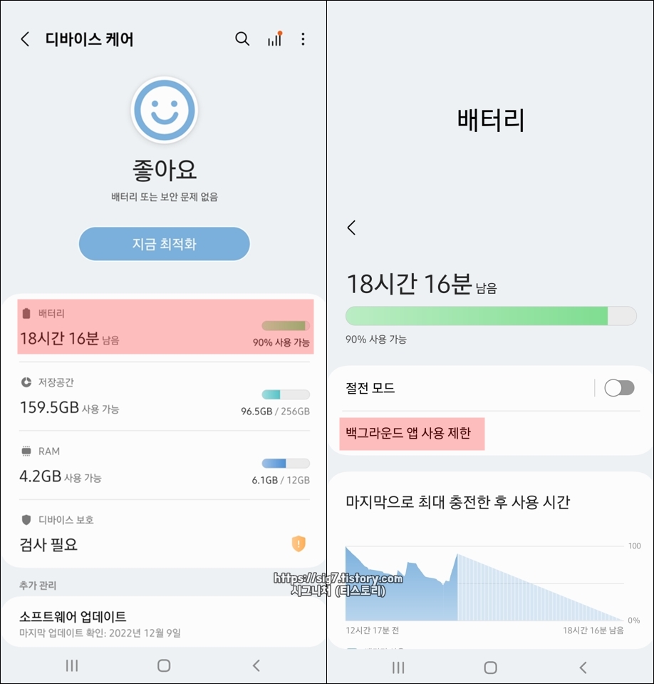 "배터리"에 있는 "백그라운드 앱 사용제한"을 눌러줍니다.