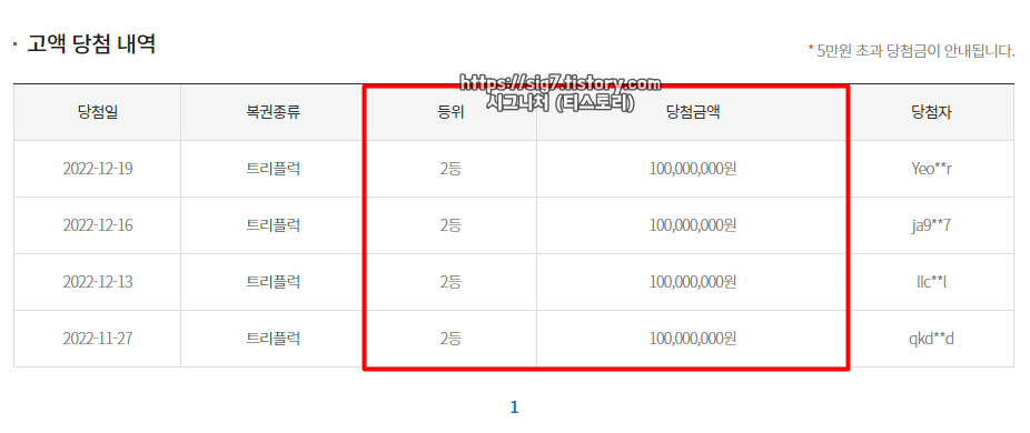 트리플럭 2등 1억 당첨자는 22년 12월 20일 기준 1개월 이내로 4명 정도 나왔다.