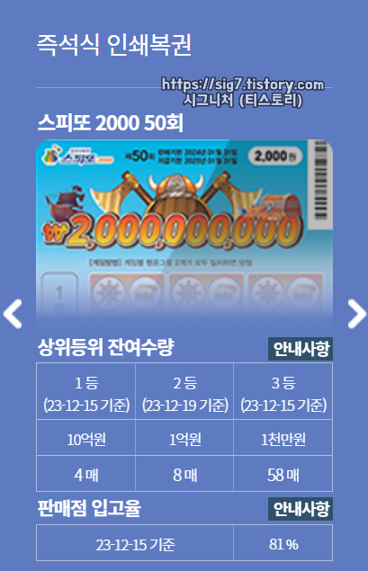 2023.10.10 - [# 즉석복권 스피또] - 스피또2000 49회 당첨현황 및 출고율