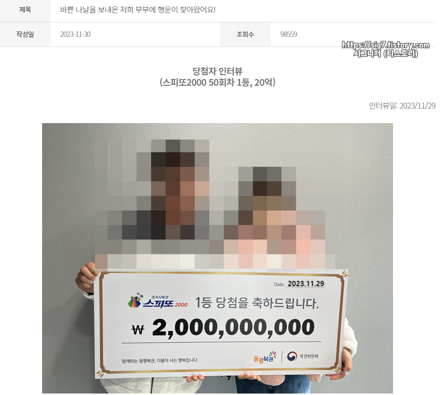 스피또2000 50회 1등 20억 당첨 인터뷰