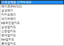 참고로 선택 가능한 간편결제 수단은 페이코, 삼성페이, 카카오페이, 네이버페이, KB국민앱카드 등이 있습니다.