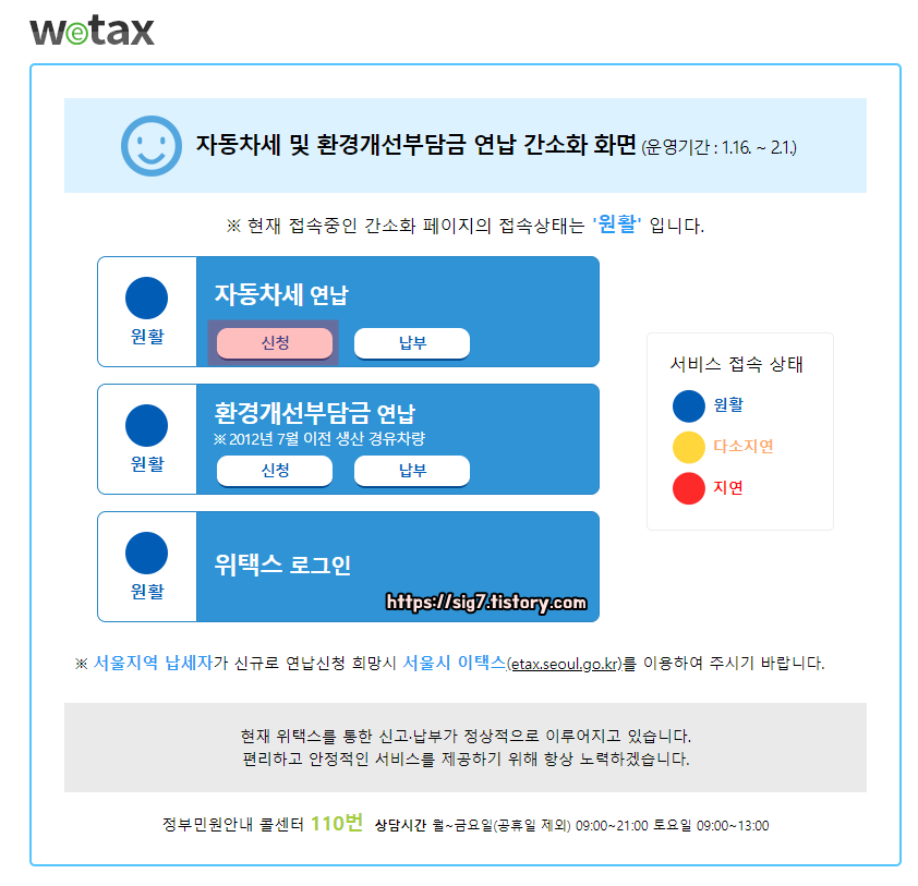 참고로 자동차세 연납 신청 가능 시간은 07시부터 22시까지입니다.