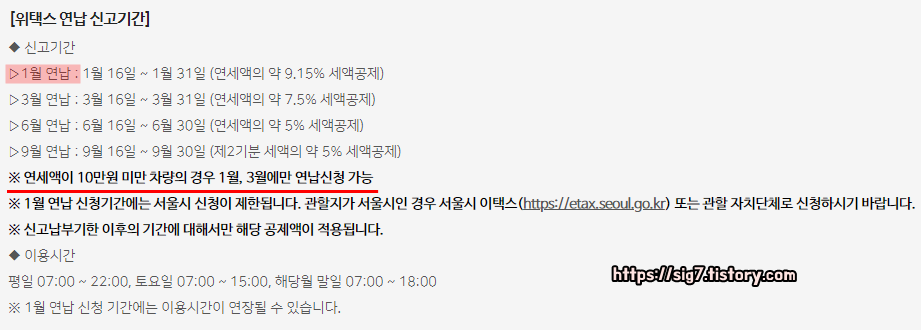 참고로 연세액 10만원 미만 차량은 1월과 3월에만 연납 신청이 가능합니다.