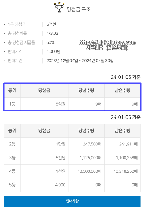 2023.12.26 - [# 즉석복권 스피또] - 스피또1000 75회 당첨현황