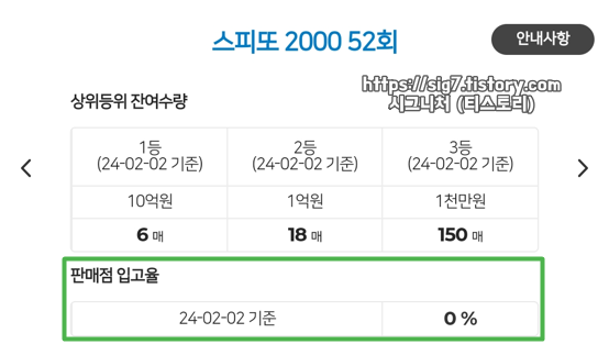 스피또2000 52회차 복권은 판매가 시작된 지 얼마 되지 않아 전국 스피또 판매점 입고율은 0%입니다.