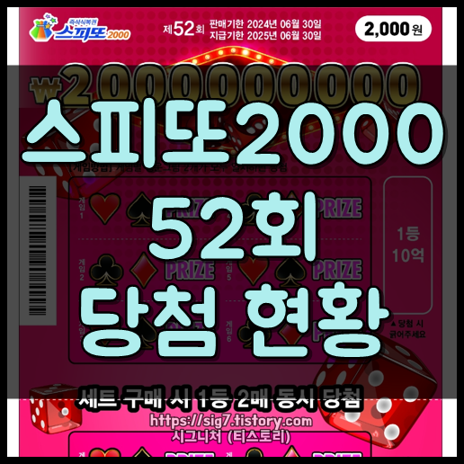 2024년 02월 05일 월요일부터 판매가 시작된 스피또2000 52회 복권. (판매 기한은 2024년 06월 30일 일요일)