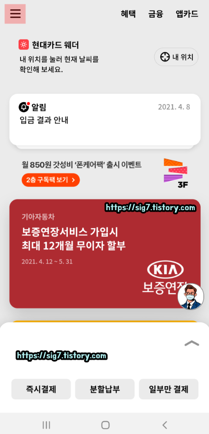 전체 메뉴에서 내 카드 관리에 있는 '내 카드 목록'을 눌러줍니다.