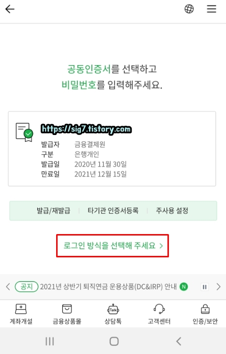 로그인 방식을 '간편비밀번호'로 선택해줍니다.