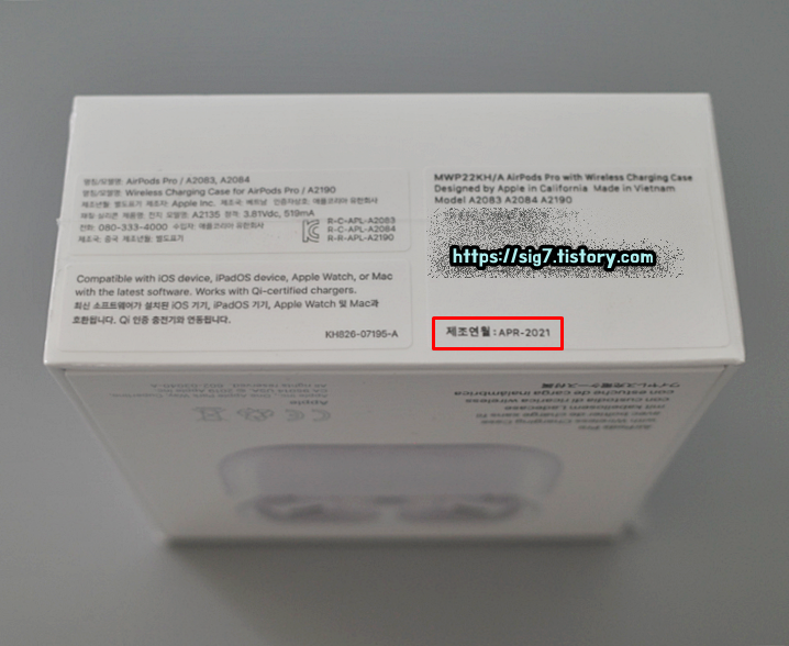 제가 받은 에어팟 프로는 제조년월이 21년 APR(4월)이네요. 주문 2달 전에 만들어진 제품이에요.!!