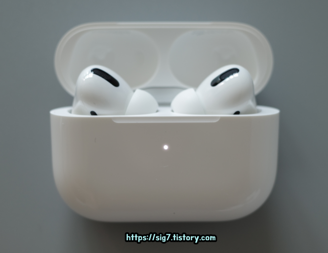 참고로 에어팟 프로는 기본적으로 무선 충전이 가능합니다. (에어팟 2세대는 유선, 무선이 구분되어 판매되었지만요.)