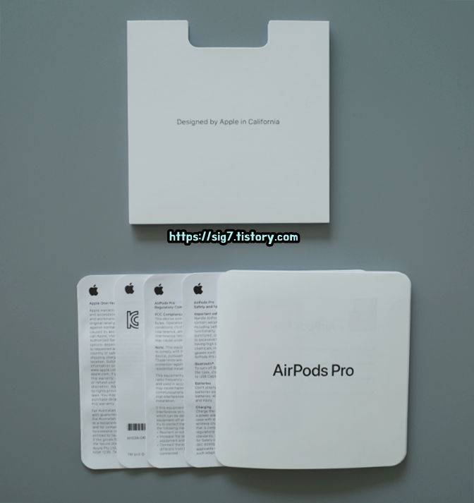 'Designed by Apple in California'가 적힌 종이 안에는 에어팟 프로 설명서가 들어있습니다.