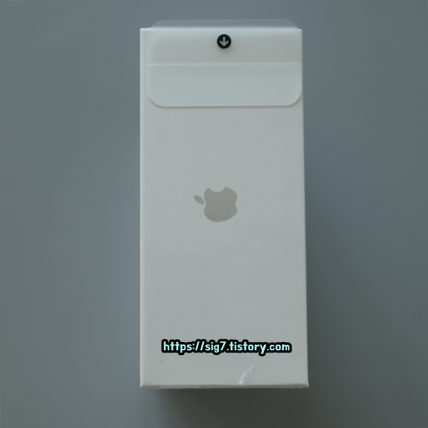 애플 패키징 전매특허 미개봉 봉인 씰. 화살표 방향대로 뜯으면 한 번에 깔끔하게 제거할 수 있는 봉인 씰입니다.