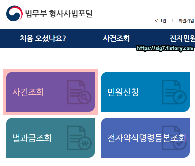 메인화면에 보이는 '사건조회'를 눌러줍니다.