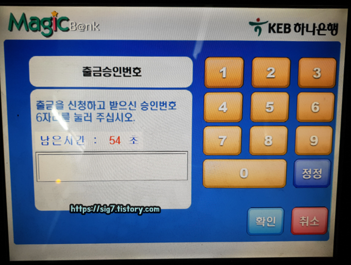 아까 휴대폰에서 생성했던 출금 승인번호 6자리를 입력해줍니다. 참고로 출금 승인번호 6자리는 5분 동안 사용할 수 있습니다.