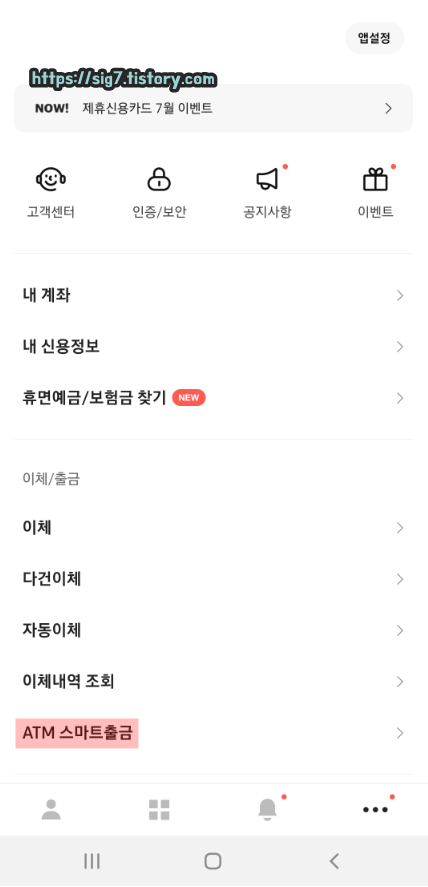 이어서 'ATM 스마트출금'을 눌러줍니다.