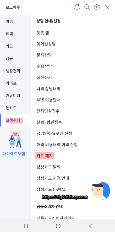 저는 편의상 모바일로 카드 해지 신청을 하도록 하겠습니다. 먼저 삼성카드 앱을 실행시켜줍니다.
