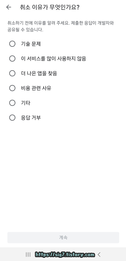 참고로 저처럼 구글 플레이 스토어 인앱 결제로 이용권을 구독했다면 플레이스토어에 가서 직접 해지 신청을 해야 합니다.