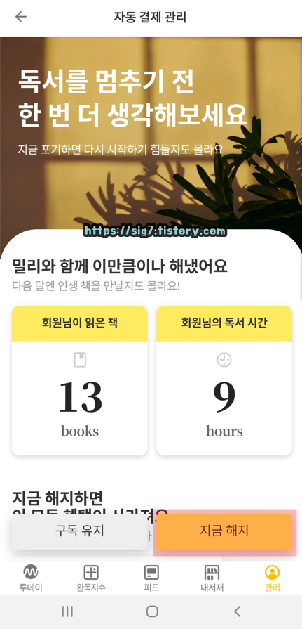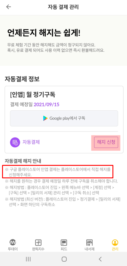 밀리의 서재 자동결제 해지 신청은 해당 앱을 통해 간단히 처리할 수 있습니다.