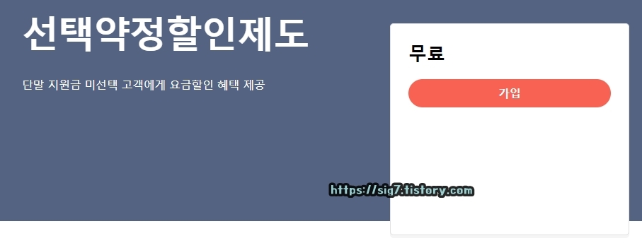 선택 약정이란 2014년 10월 01일 단통법 출시와 함께 생겨난 새로운 약정제도입니다. 단말기를 중고나라나 쇼핑몰(자급제, 중고)에서 구해와서 사용하는 사람들은 휴대폰 구입 가격에 대한 보조금(할인 혜택)을 지급받지 못하기 때문에 생겨난 제도죠.