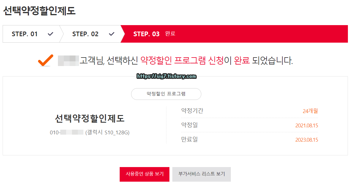 본인 인증까지 완료하면 선택 약정 할인 신청이 완료됩니다. 이제부터 선택 약정 할인 혜택을 받을 수 있습니다.