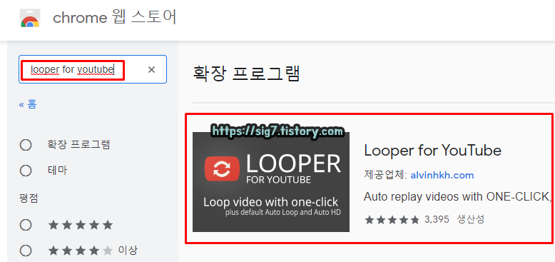 "Looper for YouTube"라는 확장 프로그램을 검색해줍니다.