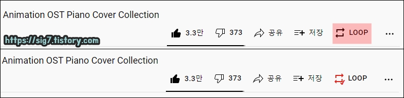 구간 반복하고 싶은 영상을 찾은 후, '저장' 우측에 보이는 "LOOP"라는 것을 눌러줍니다.