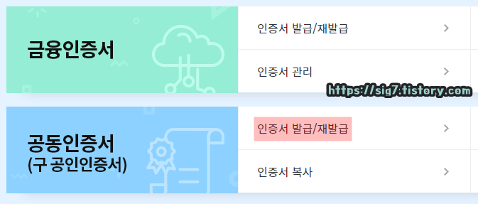 공동인증서 우측에 보이는 '인증서 발급/재발급'을 눌러줍니다.